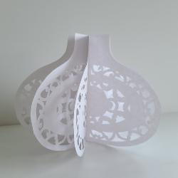 “I gave a demonstration on using paper in a 3-dimensional way to make some sculptural pottery forms,” said Brooks. “I designed the workshop to be accessible for various age groups, so I talked about how I would approach it for early studies, sketch work for a mid-level education, to more advanced forms. It started with a really simple task, kind of like making paper snowflakes: you cut, fold, you get a pottery shape. And then by taking more sheets of paper and making a book, you get something that’s multi-dimensional, just kind of pushing that model further.”